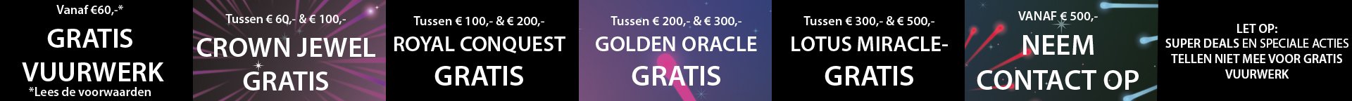 Dit jaar hebben we een aantal nieuwe producten, bekijk zeker onze nieuwe Pro Xplosion lijn eens. Een lijn die de grenzen van het toegestane vuurwerk opzoekt.