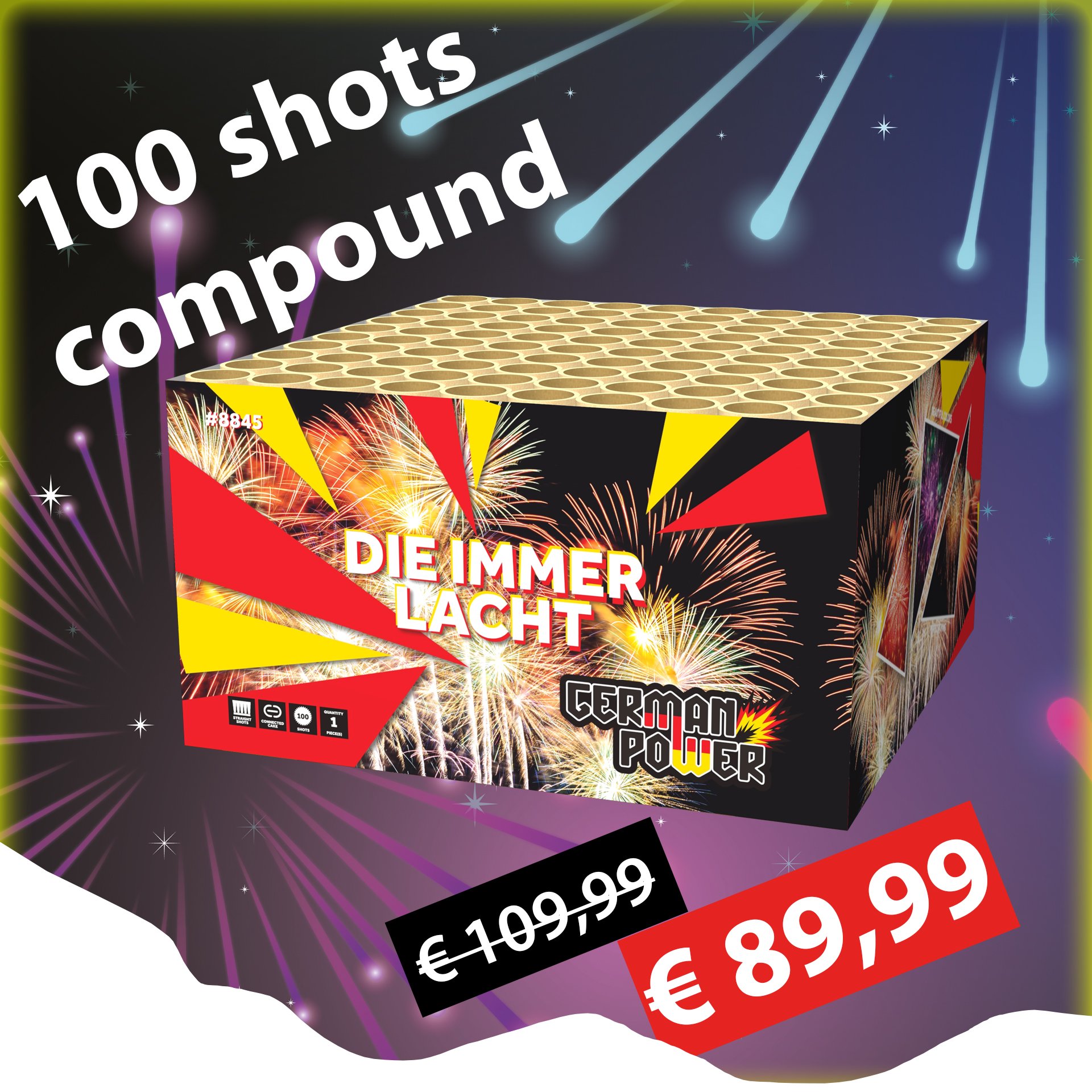100 schoten in compoundvorm met een kaliber van 25mm. Een combinatie van de mooiste effecten zijn in de ‘Die Immer Lacht’ verwerkt.