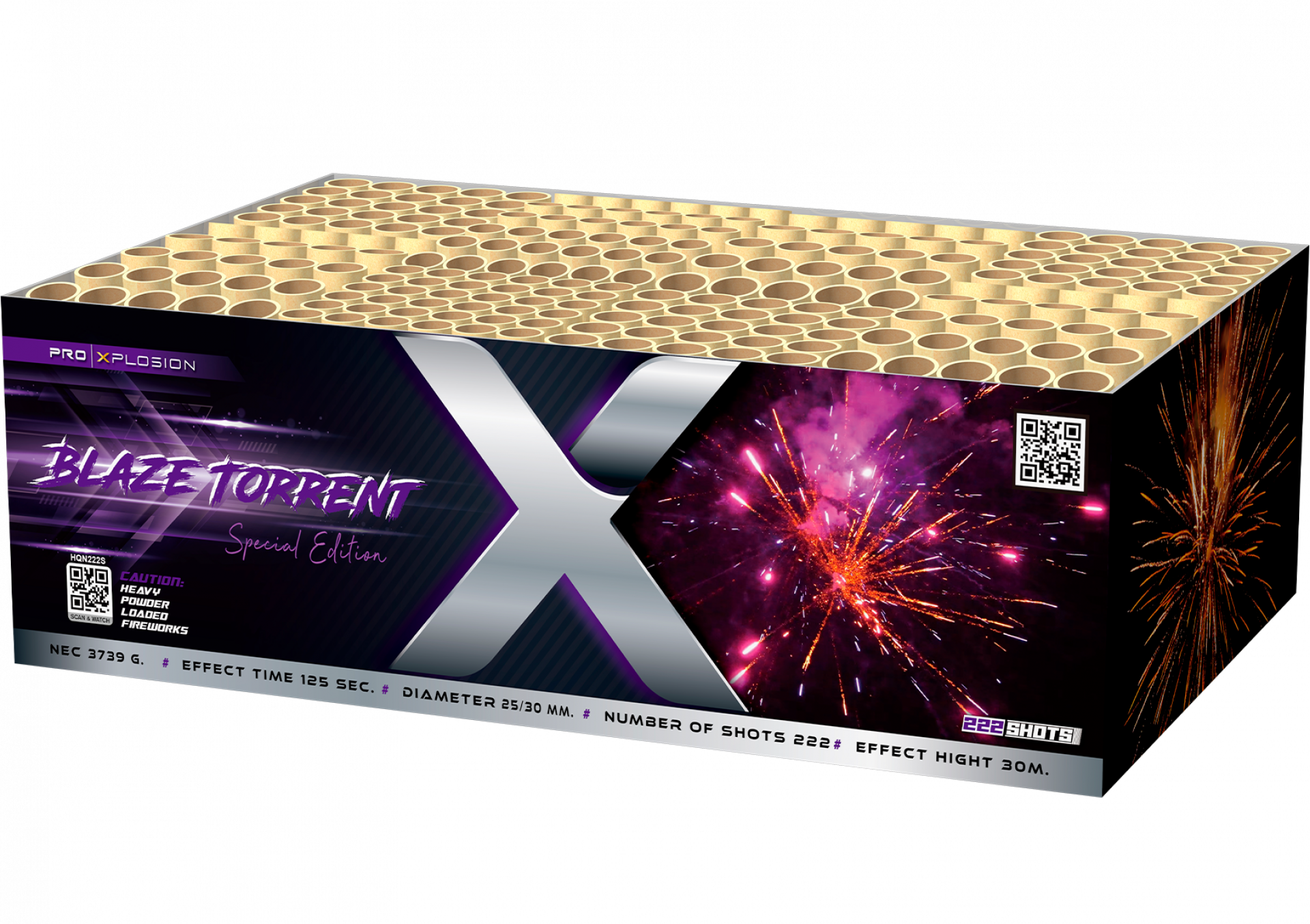 Een zware compound die blijft doorgaan. Blaze Torrent vuurt in golven, wisselt tempo en blijft verrassen met een hoge mix aan siereffecten van premium kwaliteit. 222 schoten pure showkracht dragen jouw finale. De buurt kijkt ademloos mee.