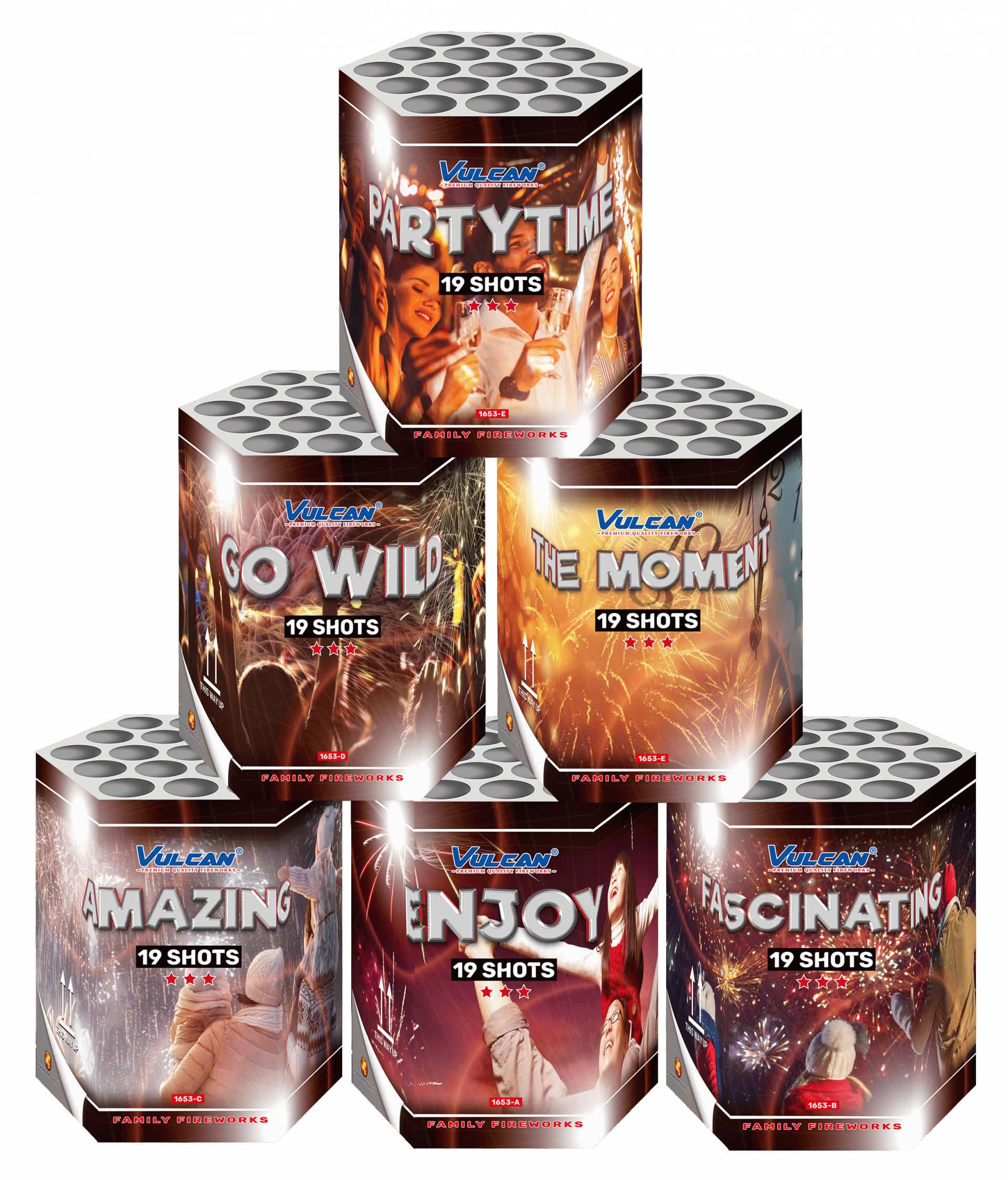 De Family Pack Assortment is een kleurrijk en levendig cake-assortiment (6 × 19 schoten) dat zorgt voor een spectaculair vuurwerkdisplay. Met indrukwekkende effecten en een feestelijke uitstraling is dit pakket perfect om samen met het hele gezin van te genieten en onvergetelijke herinneringen te creëren.