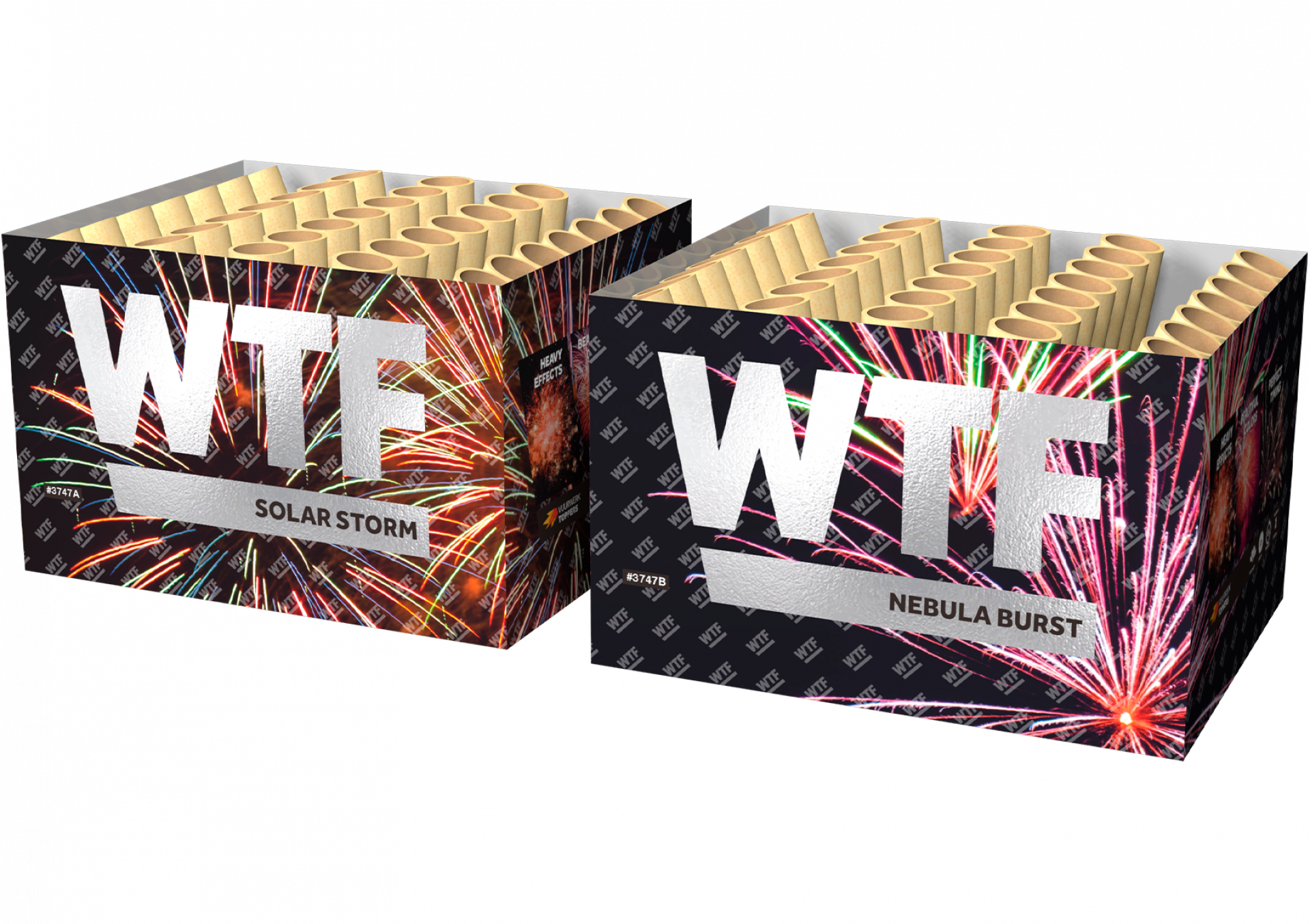 Twee zware 500 grammers, één brute combi. Solar Storm levert je een dubbele show: Cake 1: one star pistils met golden coconuts. Groots en stijlvol. Cake 2: crackling tails, blinkboeketten en kleurrijke dahlia-sterren. Fel en wild.